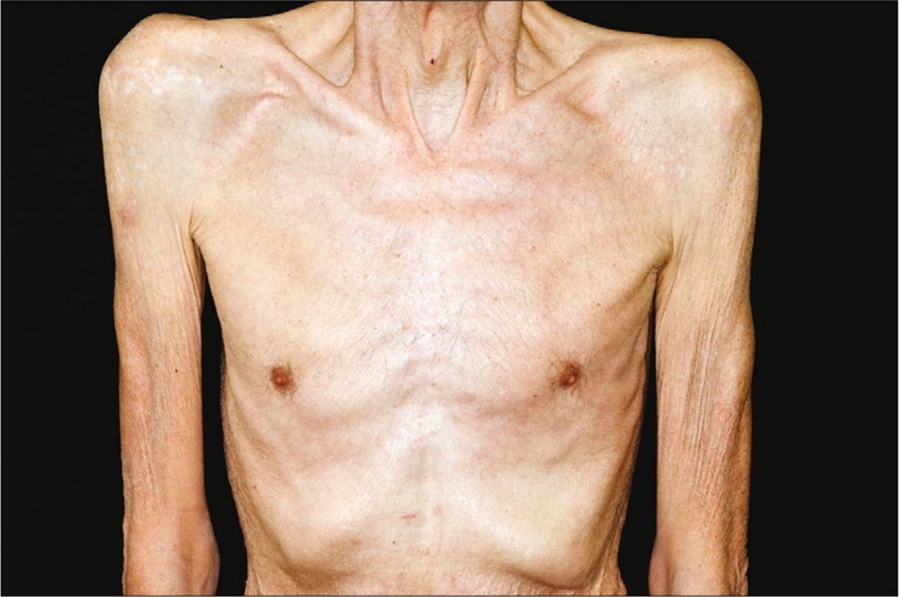 During tumor development many, but not all, cancer patients unintentionally lose a significant portion of their body weight along with also losing muscle proteins resulting in reduced muscle strength; this syndrome called cancer cachexia directly responsible for about 30% of all cancer deaths. A typical cachectic cancer patient is shown below.